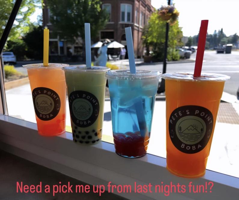 Welcome to Pete's Point Boba & Crepes, where every sip and bite is crafted with care. Located in the heart of Joseph Oregon we specialize in offering the perfect combination of two of the most delightful treats: freshly made boba teas and handcrafted crepes. Our Offerings: * Boba Teas, Sparkling Lemondade and Lutus Energy Drinks : Dive into our vibrant selection of boba teas, from classic milk teas to fruity and refreshing blends. Each drink is made with premium ingrienients. With options like tapioca pearls, fruit burst, and more, there's a flavor for every craving. *Crepes: Indulge in our delicious crepes made to order, made with the finest ingriedients to ensure you get the freshest, most flavorful expierience every time you visit. We offer a variety of fillings that range sweet & savory. Whether you're craving a blueberry lemon crepe for desert or a turkey pesto crepe for lunch, we've got something to satisfy your taste buds.